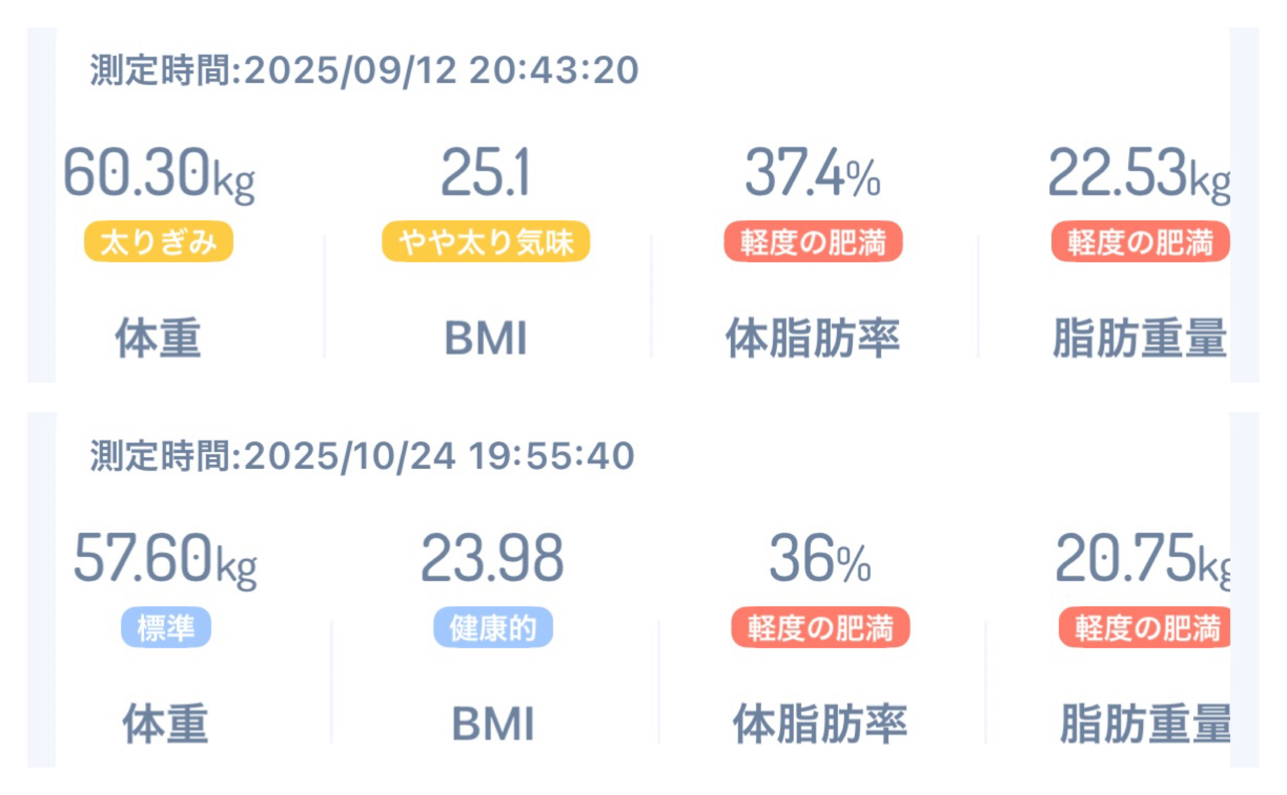 約1ヶ月で2キロ減量し、体脂肪も1.4%減りました👏😢